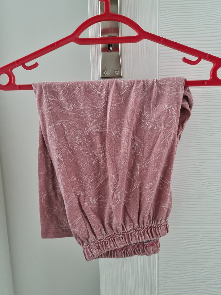 Yumuşak sentetik kumaştan yapılmış, pilili ve bol kesim pembe midi pantolon. Günlük ve sokak tarzına uygundur.