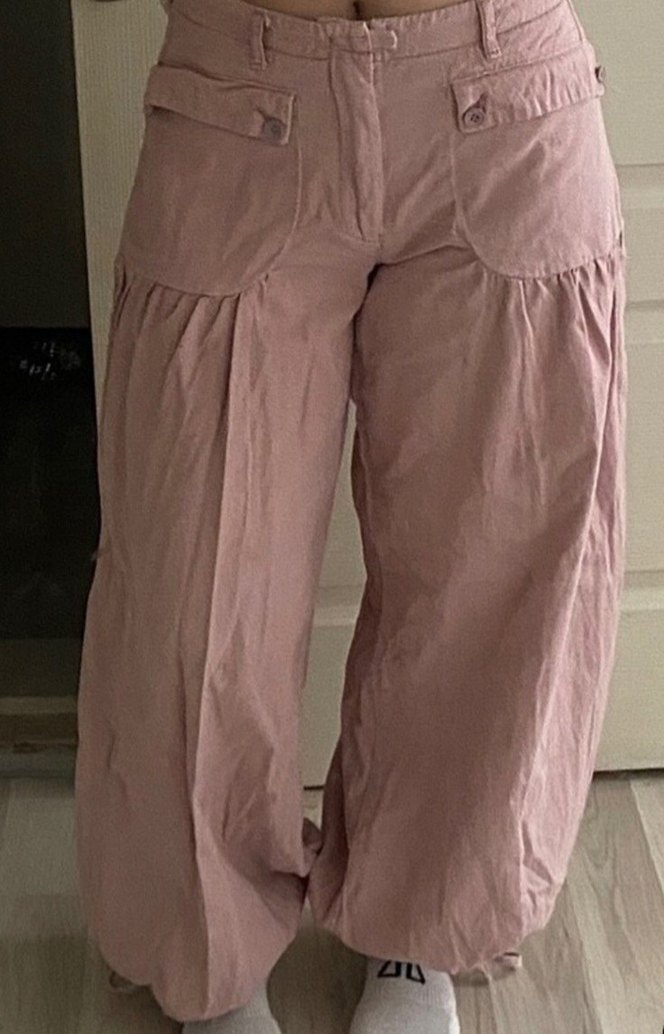 Pembe, pilili ve salaş kesime sahip pantolon rahat ve trend sokak stili için uygundur. Buradan aldım ama giymedim. Marka temsili