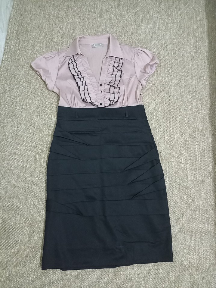 Pembe Pilili Kısa Kollu Ofis Elbisesi
