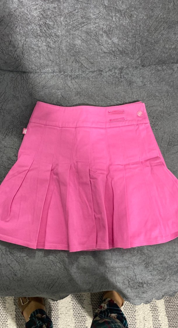 Pembe renkli, pilili ve vücuda oturan mini etek. Yumuşak sentetik kumaştan yapılmış, günlük kullanıma uygun sade ve renkli bir modeldir.