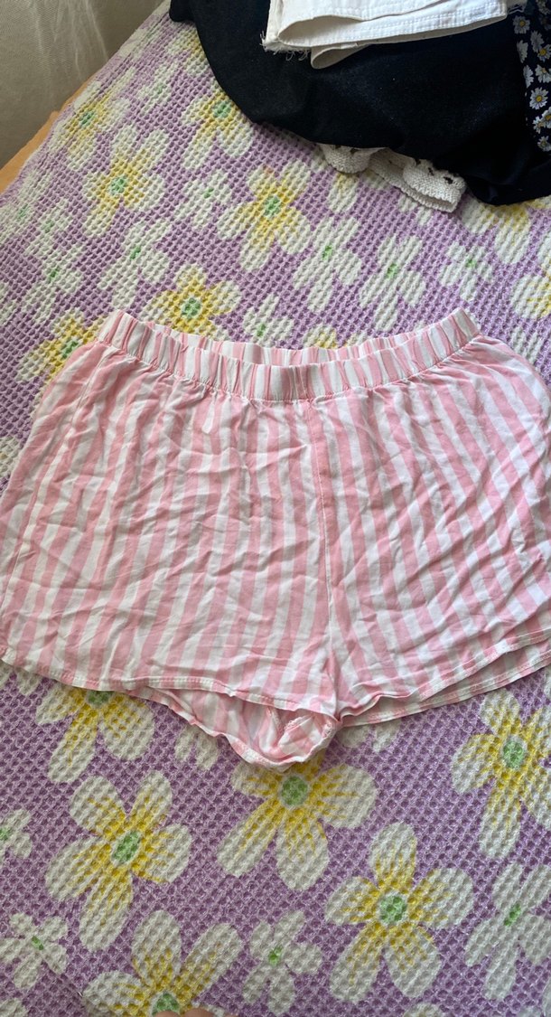Pembe pilili pamuklu mini hamile şortu, pastel tie-dye deseniyle rahat ve bohem tarzda sokak modasına uygun.