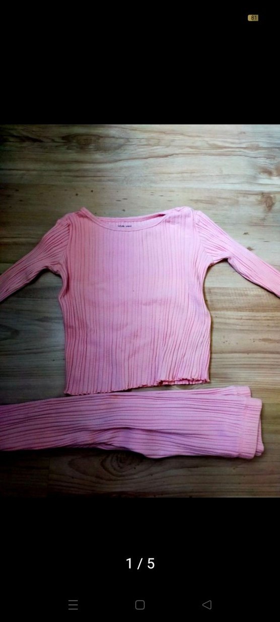Pastel pembe renkte, uzun kollu ve pilili dokuda yumuşak ve rahat bebek kıyafet seti.