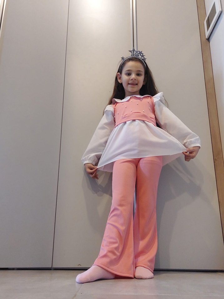 Pembe renkli, piliseli ve straplez yaka kız bolero, uzun kollu ve yumuşak, sıcak kumaştan üretilmiştir. Trend bir görünüm sağlar. 7,8yaş sadece