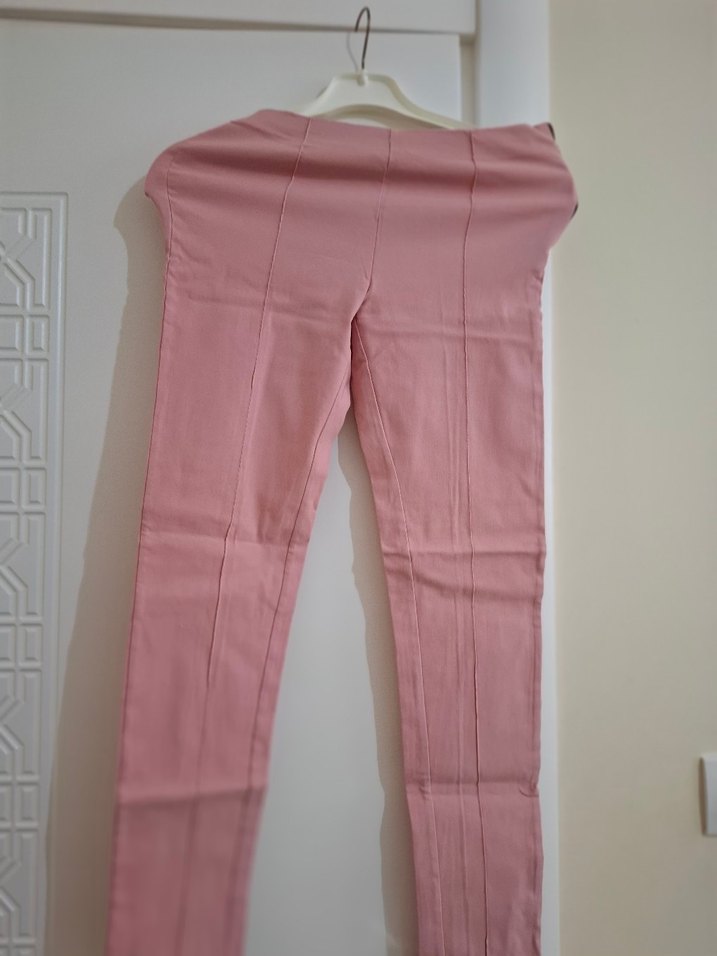 Pembe midi uzunlukta, piliseli detaylı, regular fit kadın kumaş pantolon. Minimalist tasarımlı, günlük kullanım için uygun, yumuşak sentetik kumaştan üretilmiştir.