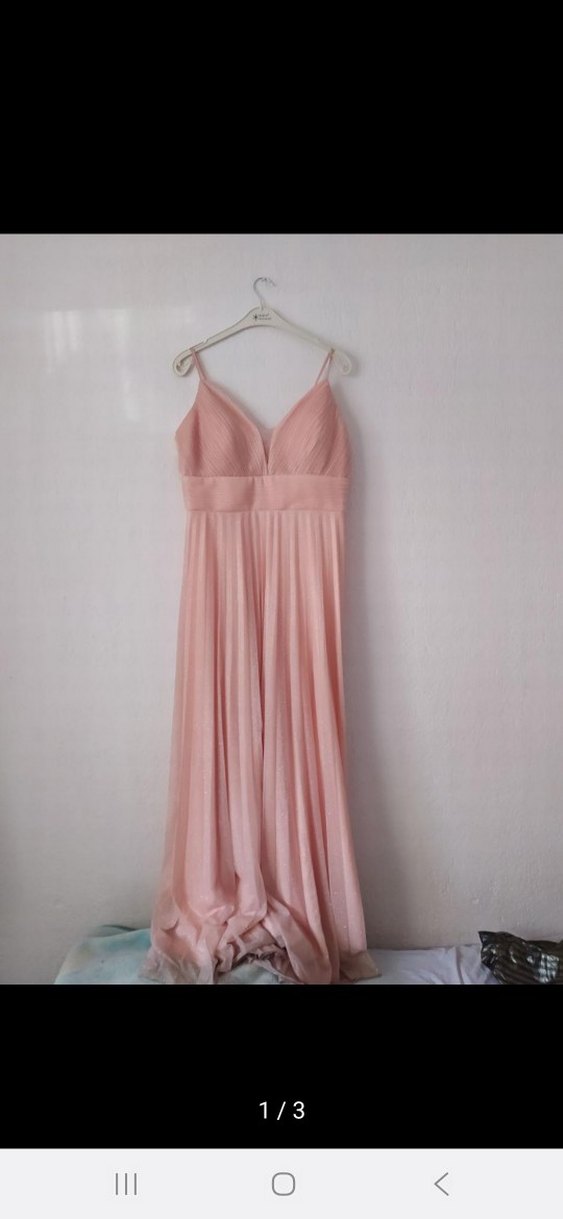 Pembe Piliseli Uzun Askılı Abiye Elbise