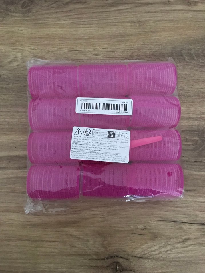 Pembe plastikten yapılmış, cırtlı tutuş sağlayan saç bigudisi seti, renkli bir görünüm sunar.