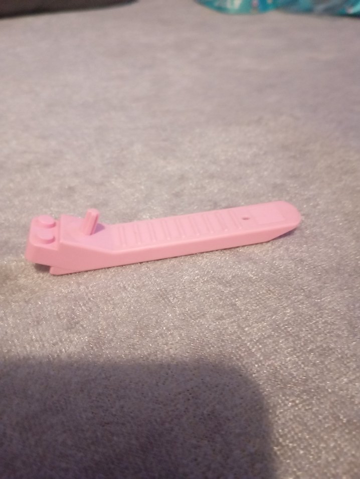 Pembe plastikten yapılmış lego aparatı, kullanımı kolay ve kompakt tasarıma sahiptir.