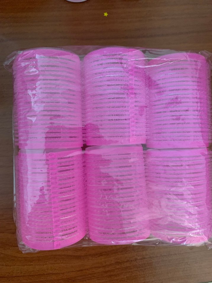 Saç şekillendirmek için 6'lı pembe plastik saç maşası seti. Hafif ve kullanımı kolaydır.