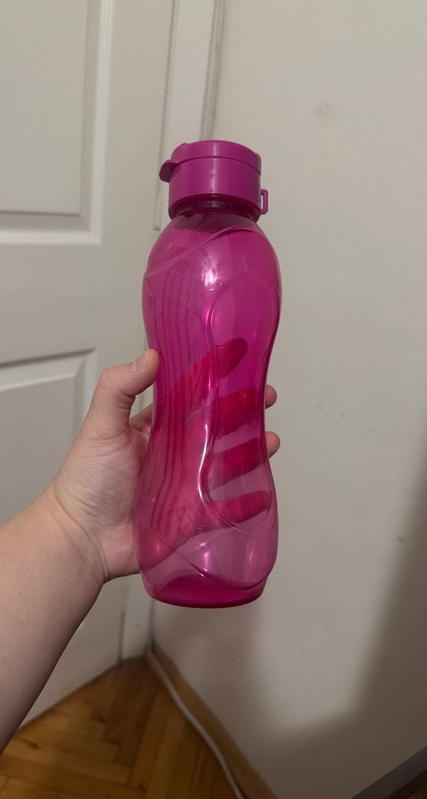 Pembe renkli, renkli ve kullanışlı tasarıma sahip plastik su şişesi, kapaklı ve taşımaya uygun. hiç kullanmadım duruyor öyle fazlalıktan satıyorum
