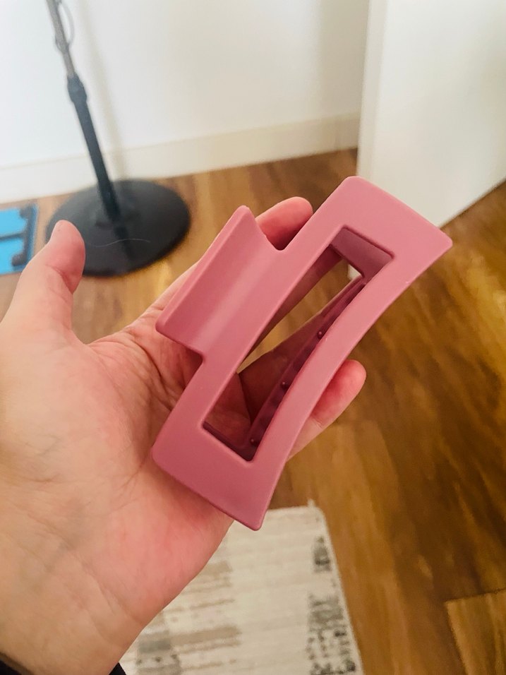 Pastel pembe renkli, tokalı plastik saç tokası, sade ve çağdaş tarzda kullanıma uygundur.