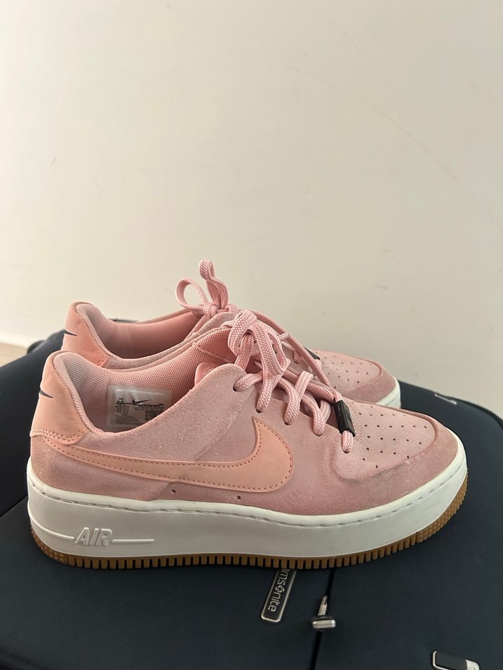Pastel pembe renkte, platform topuklu ve bağcıklı, kauçuk tabanlı kadın spor ayakkabısıdır. Spor ve günlük sokak tarzına uygundur.