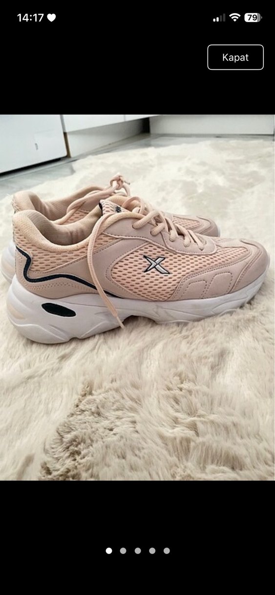 Pastel pembe renkte, bağcıklı ve platform topuklu spor ayakkabılar. Kauçuk malzemeden üretilmiş, yılan derisi desenli şık ve rahat bir model.