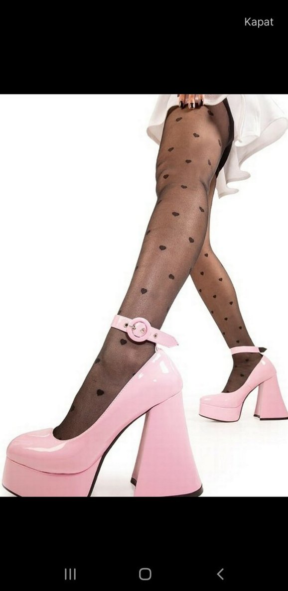 Pastel pembe tokalı platform topuklu ayakkabılar, polka dot desenli ve kauçuk malzemeden üretilmiş, parti ve gotik tarz için ideal.