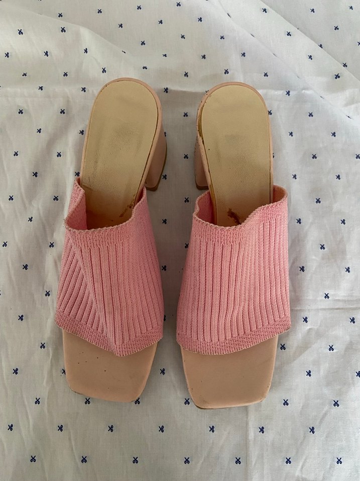 Pembe renk, blok topuklu ve pliseli tasarıma sahip kadın terlikleri. Kauçuk malzemeden yapılmış, günlük kullanıma uygun minimal ve normcore stil sunar.