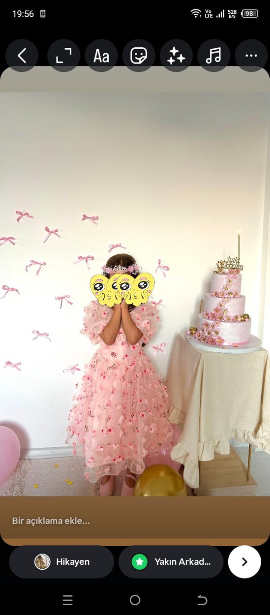 Pembe renkte, pofuduk kollu ve straplez, baskılı detaylara sahip, pop kültür tarzında çocuk elbisesi. üç boyutlu aksanlarla şık ve modern görünümlü. tac dahil değil. 5 ,6,7,8 yaş uyumlu dur