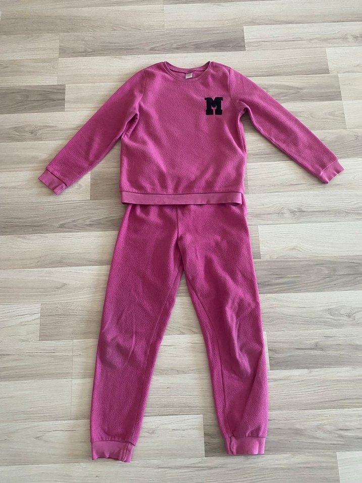 Kızlar için, uzun kollu ve bisiklet yaka, rahat kesim pembe eşofman takımı. Yumuşak ve sıcak kumaştan, sade 'M' detaylı. Görselde görüldüğü gibi defoları vardır