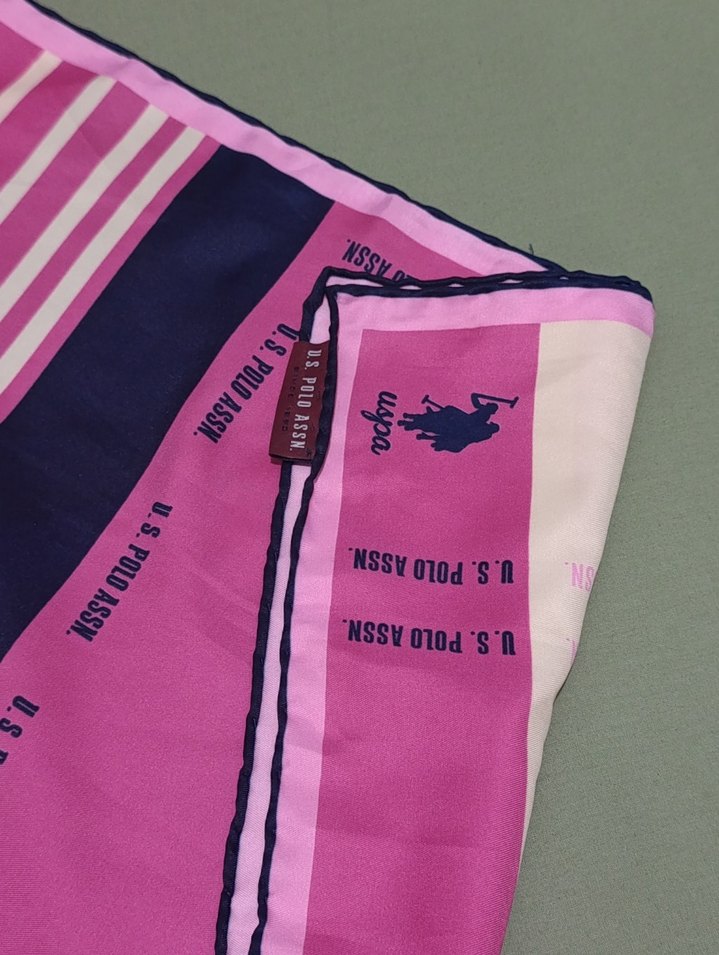Pembe "U.S. POLO ASSN." yazılı eşarp temiz kullanılmıştır orjinal resimde mevcut