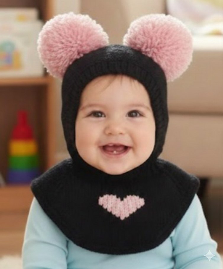 Siyah örgü bebek bere, iki büyük pastel pembe ponpon ve önünde pembe nakış kalp detayına sahiptir. Hem boyunluk hem bere bir arada! Bebeğinizin kulaklarını ve boynunu soğuktan korurken, tepesindeki dev ponponlar ve göğsündeki kışları üzerine çekecek. #bebekberesi #bebekmodasi #kislikhazirlik #ponponlubere #bebekgiyim #annevebebek #babyfashion #cocukaksesuar #bebekhazirliklari #tarzbebekler #elörgüsü #babybalaclava #bebekhediyesi#kızbebek#bebekberesi #bebekmodası #çocukgiyim #bebekhazırlıkları #annebebek #bebekkıyafetleri #balaklava #boyunluklubere #kışlıkbebekgiyim #elemeği #örgubere #bebekörgüleri #handmade #tasarımbere #örgümodelleri #nakoileörüyorum #alizeyünleri #hobidunyası #pembeseverler #kalpliber #ponponlubere #bebekstili #kışmodası #hediyelik #bebekhediyesi #çocukaksesuar