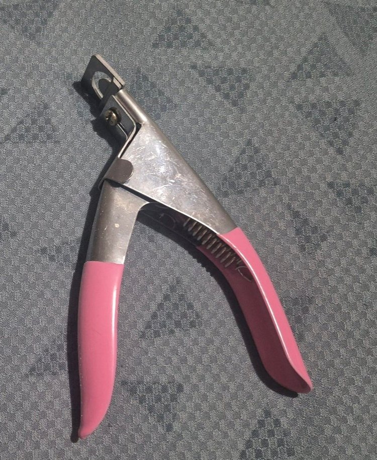 Pembe renkte, metal bıçaklı ve rahat saplı protez tırnak makası, tırnak kesimini kolaylaştırır.