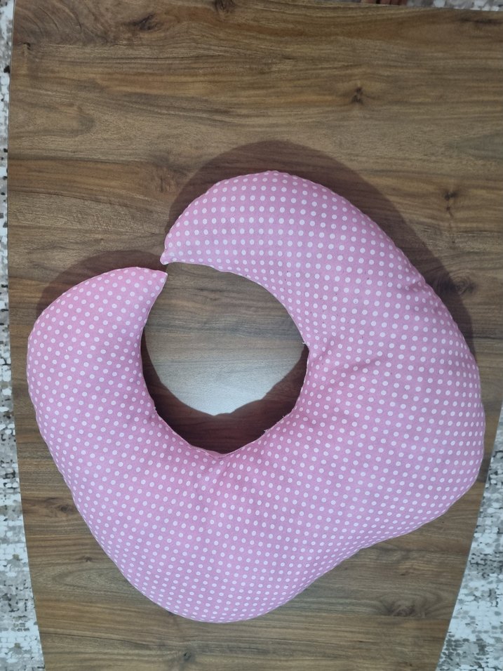 Pembe puantiyeli, hamile ve emzirme için rahat destek sağlayan yastık. özel dikimdir. en kaliteli poplin ve duck kumaş kullanılmıştır. çok az kullanıldı cok yeni durumda.
