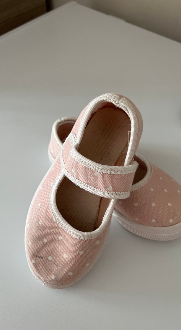 Pembe puantiyeli, cırt cırtlı, yumuşak kauçuk malzemeden yapılmış kız çocuk babet ayakkabısı. Rahat ve sade tarzda.