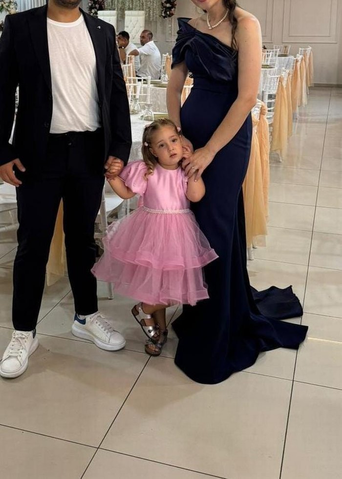 Pembe kabarık etekli kurdele detaylı özel dikim elbise 5 yaş