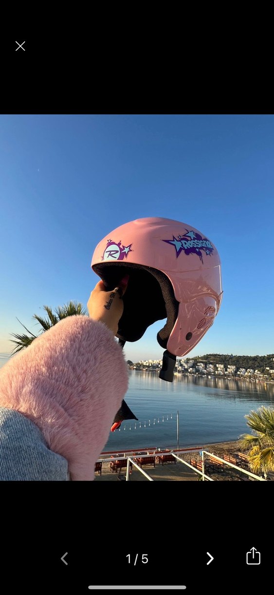 Pastel pembe renkte, puflu tasarıma ve baskılı street style grafiklere sahip motosiklet kaskı. İç kısmı yumuşak ve sıcak tutan kürk dokulu kumaştan yapılmıştır. ️