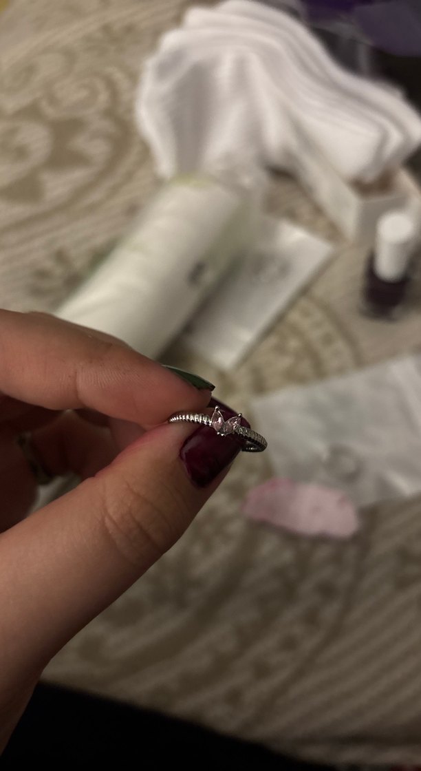 Pembe pul detaylı, desen içermeyen minimalist kadın yüzüğü. Romantik akşamlar için sade ve şık bir tercih. ayarlanabilir markası yoktur