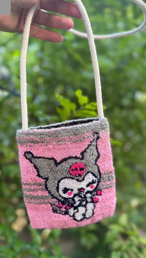 Pembe renkli, nakışlı örgü kadın çanta, yumuşak dokulu ve ip askılıdır. Rahat, retro tarzıyla günlük kullanım için uygundur. Punch