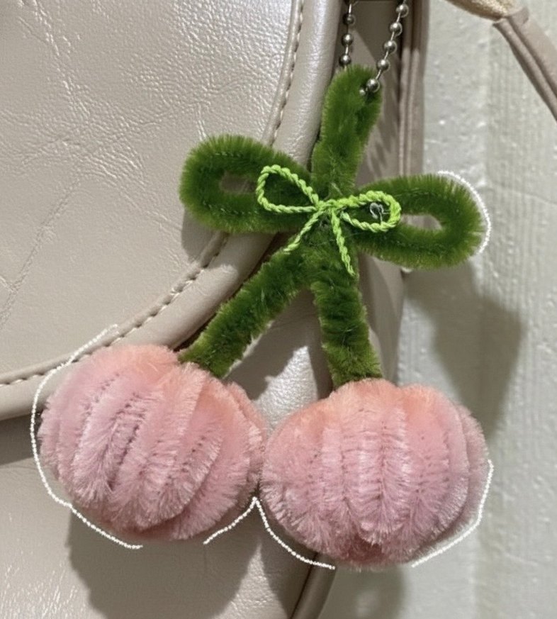 Pembe Püsküllü Bohem Kiraz Anahtarlık