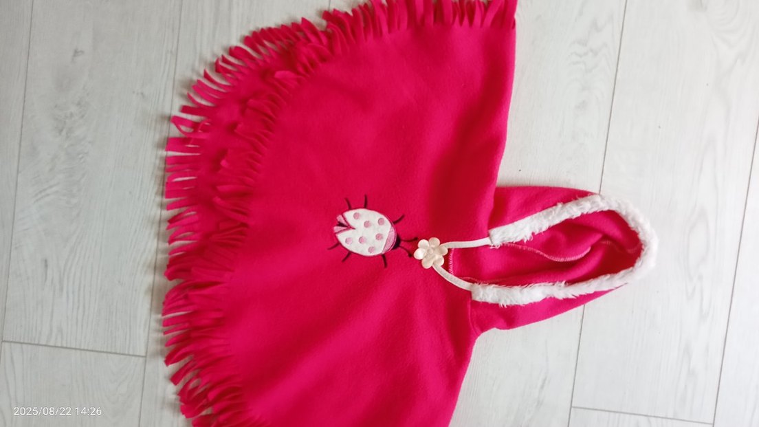 Canlı pembe renkte, renkli nakışlı ve püsküllü, bohem tarzda, boğazlı ve askılı, bol kesim kız panço.