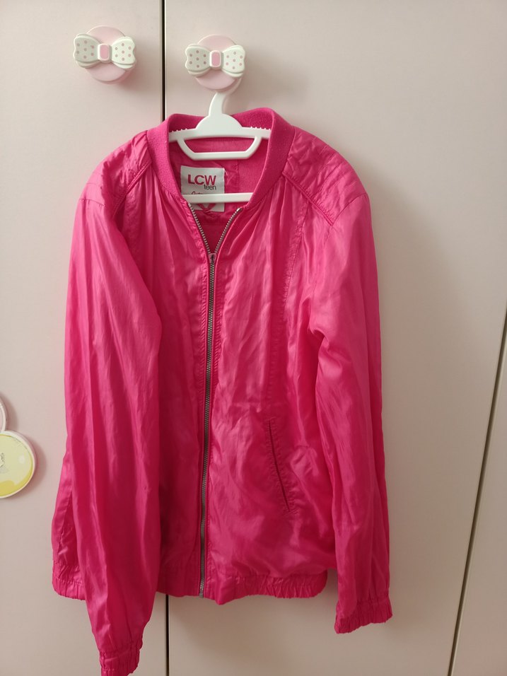 Pembe renkli, fermuarlı ve rahat kesime sahip uzun kollu ceket. Tek kusuru fermuarındadır. Resimde de görünüyor