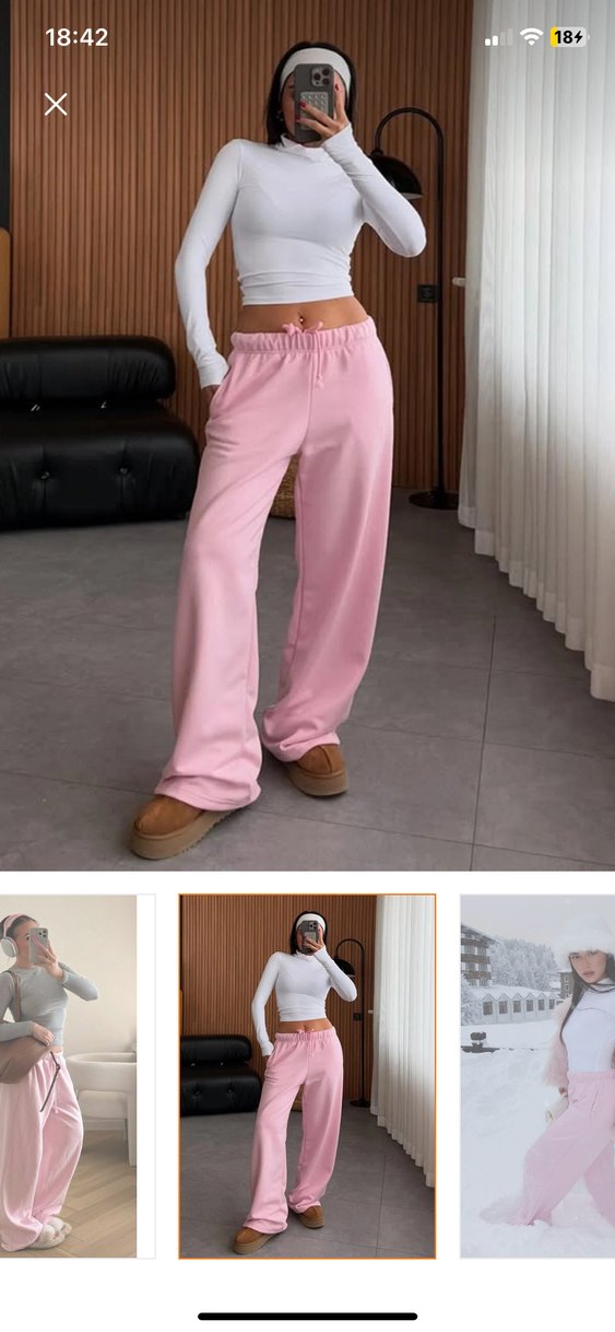 Pembe pastel tonlarda, rahat kesim ve normal boyda, yumuşak ve sıcak dokulu kumaştan kadın eşofman altı. Sokak stiline uygun, konforlu ve şık.