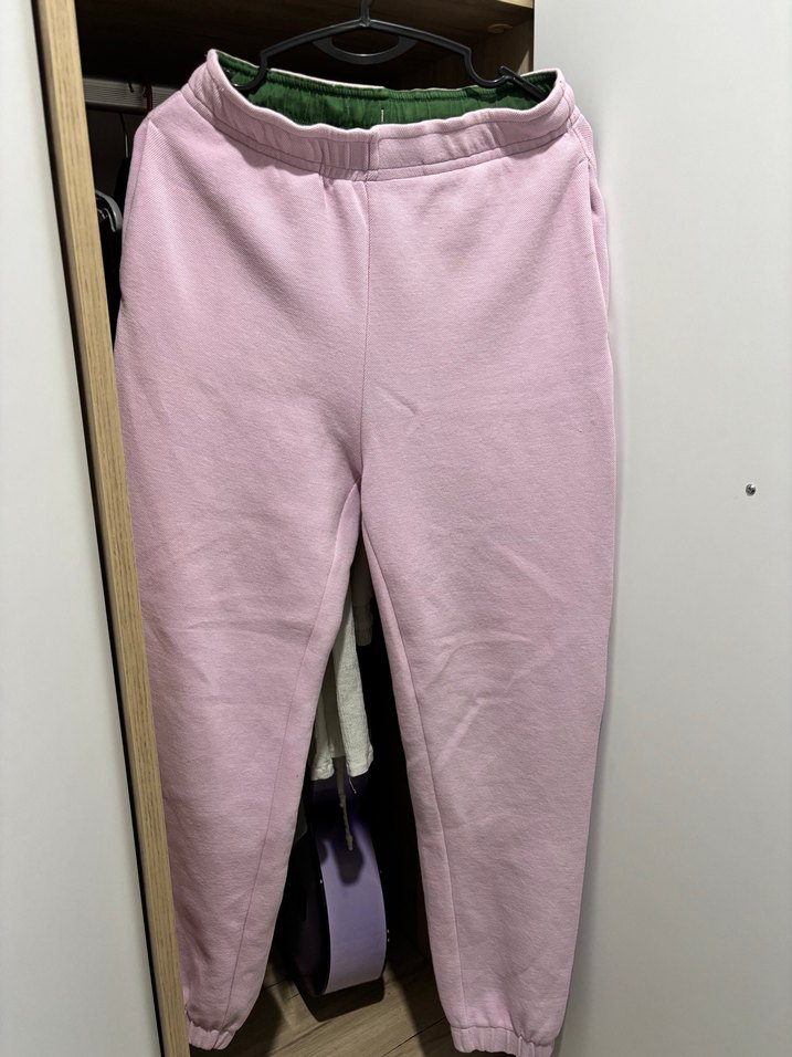 Yumuşak ve sıcak kumaştan, rahat kesim, pastel pembe kadın eşofman altı. Orta boy, elastik bel ve bilek kısmı ile günlük kullanıma uygundur.