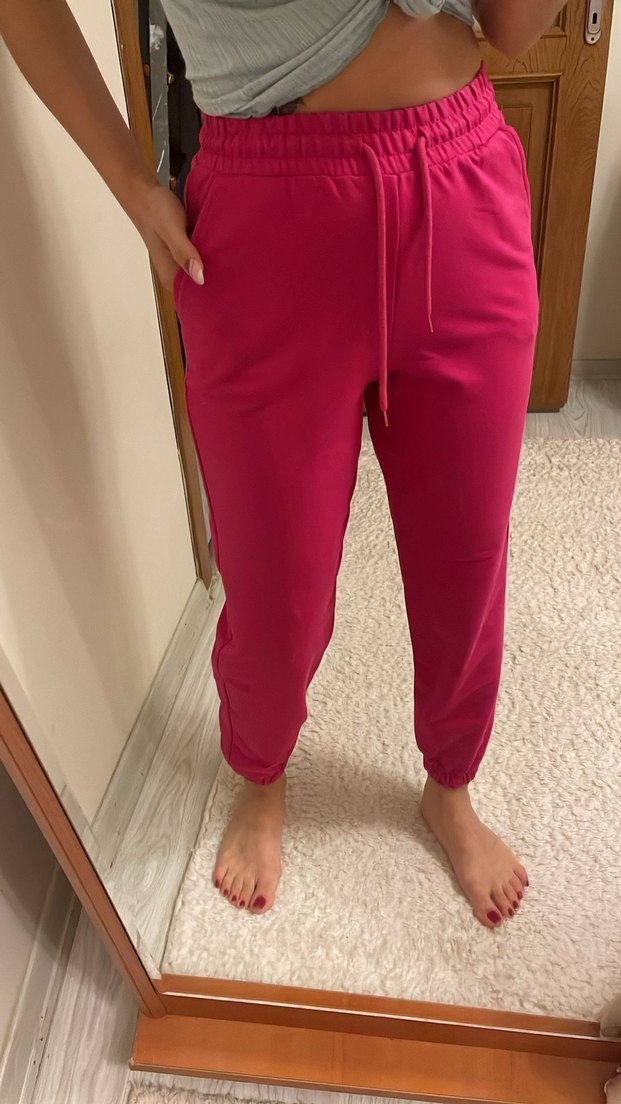 Pastel pembe, rahat kesim ve normal boyda, yumuşak ve sıcak kumaştan üretilmiş kadın eşofman altı. Günlük kullanıma uygun, zahmetsiz şıklık ve sokak stili sunar.