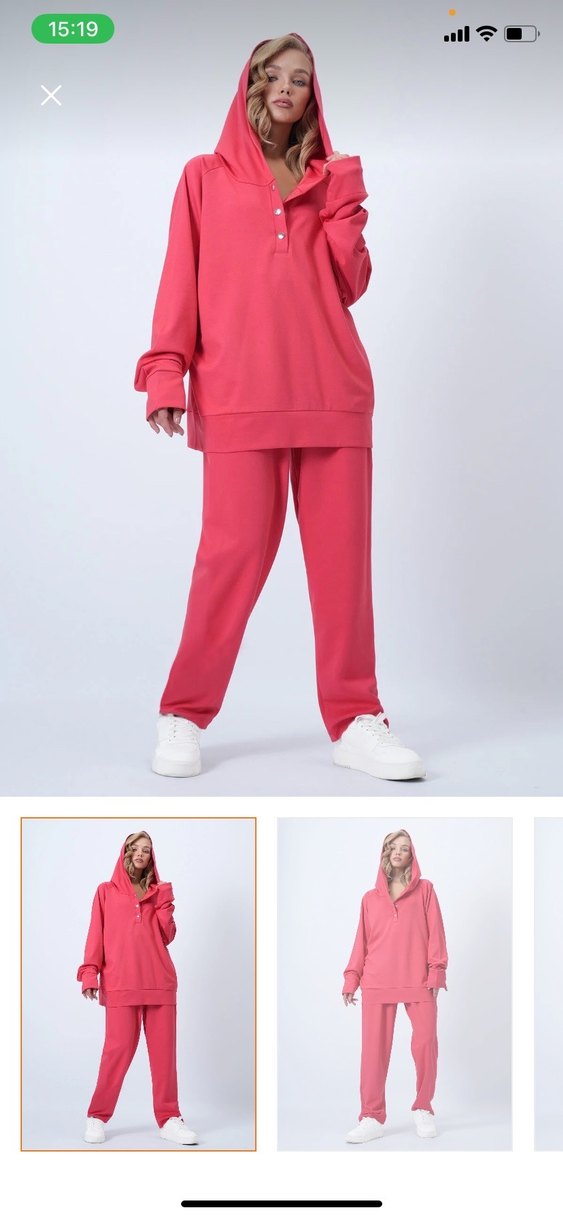 Kadınlar için pembe, rahat kesim eşofman takımı. Uzun kollu ve yuvarlak yakalı, yumuşak ve sıcak kumaştan üretilmiş, midi boyda günlük kullanıma uygun. M giyenede L giyenede olur
