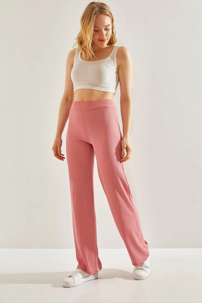 Pembe Rahat Kesim Kadın Kumaş Pantolon