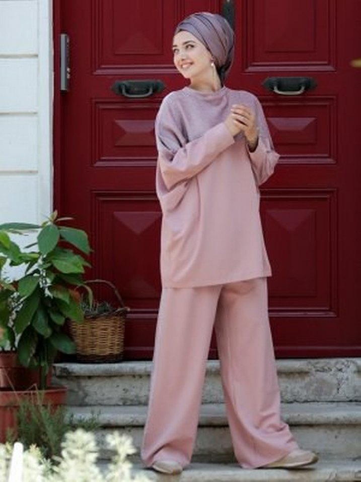 Pembe Rahat Kesim Kadın Tesettür Takım