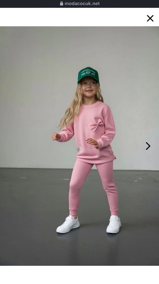 Pastel pembe renkli, rahat kesim kız eşofman takımı. Uzun kollu ve yuvarlak yakalı, yumuşak ve sıcak kumaştan üretilmiştir. Sokak stili için zahmetsiz şıklık sunar.