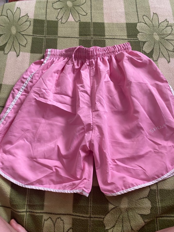 Sentetik kumaştan pembe, rahat kesim midi deniz şortu. Fırfır detaylarıyla günlük athleisure tarzına uygundur.