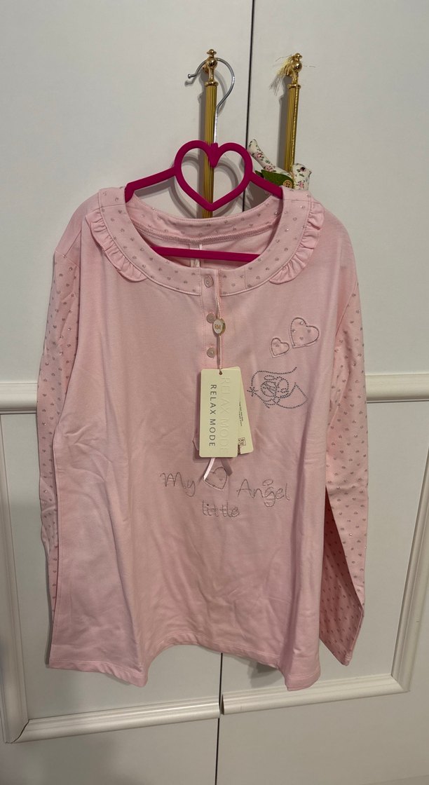 Pembe renkli, penye kumaştan yapılmış, rahat kesim ve uzun kadın pijama. Alt kısmı cepli ve rahat kesimdir. Hamilelik ya da lohusalıkta da kullanılabilir. Etiketi üzerindedir.