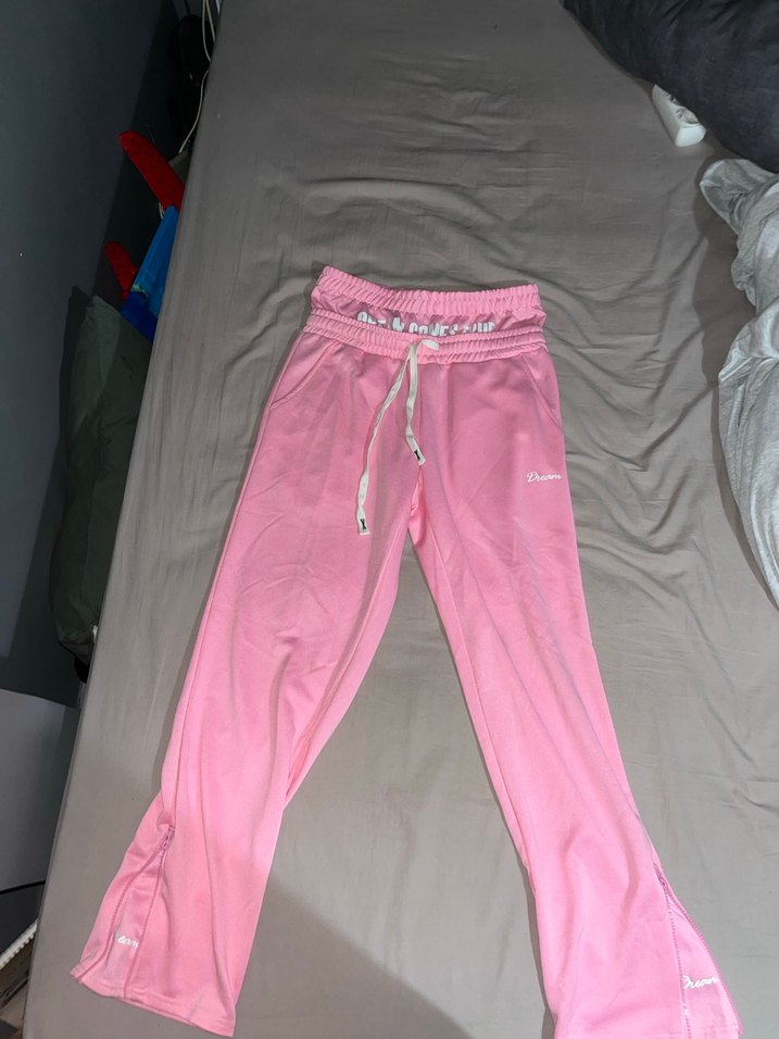Yumuşak sentetik kumaştan yapılmış, midi boyda, pembe rahat kesim unisex eşofman altı. Spor ve şık sokak stili için uygundur.