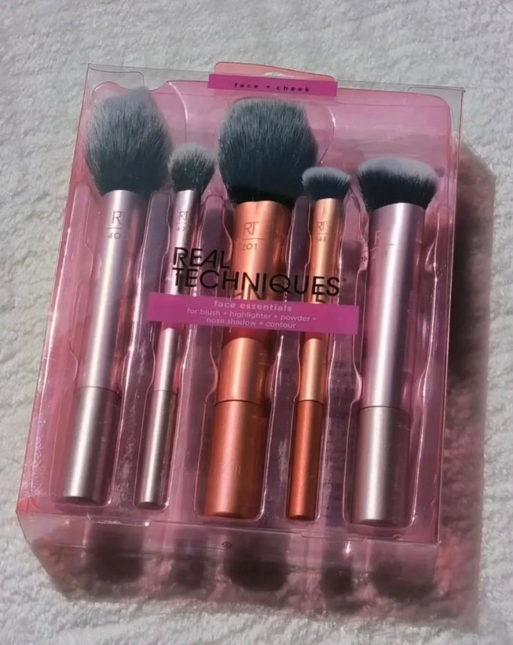 Real Techniques markasına ait pembe renkli, yumuşak kıllı 5'li makyaj fırçası seti. Allık, aydınlatıcı ve kontür için uygun.