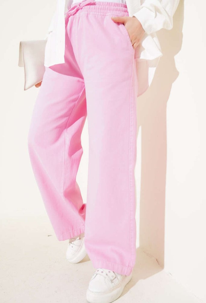 Pembe Regular Fit Bağcıklı Kadın Pantolon