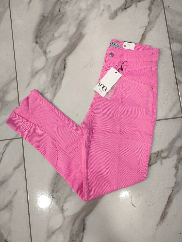 Pembe renkli regular fit kadın pantolon, pamuk kumaştan üretilmiş ve fermuarlı detaylara sahip. Midi boyda, günlük sokak stili için uygun.