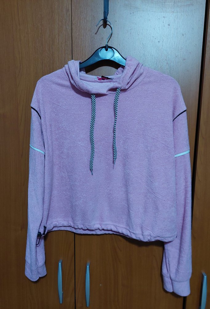 PEMBE RENK KAPİŞONLU HAVLU KISA SWEATSHİRT