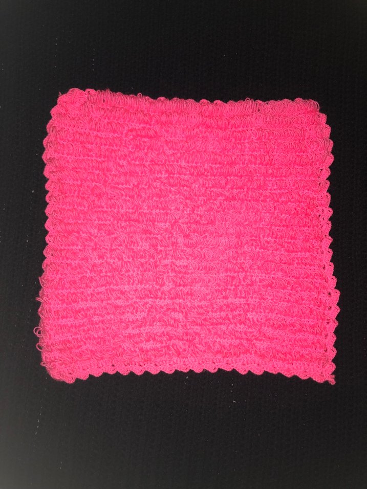 Canlı pembe renkte, yumuşak dokulu banyo süngeri, nazik temizlik için uygundur. Çift taraflı saçaklı