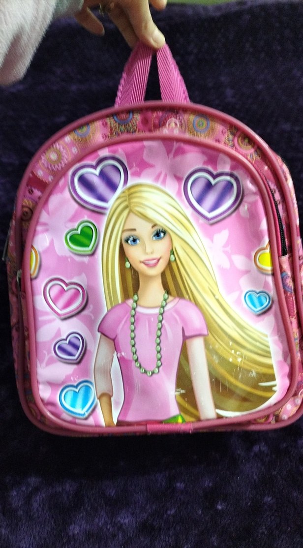 Pembe renkte, üzerinde kız figürü ve renkli kalpler bulunan çocuk okul çantası. Ana bölmeli ve ayarlanabilir askılıdır. iki gözlü fermuarlidir kullanışlıVe kalemkutu (hiç kullanılmadı Barbie li)İkisininde kullanımına engel yok.kizim çok az kullandı zaten ikisinin fiyatıdırKucuk fermuarlı bozuk