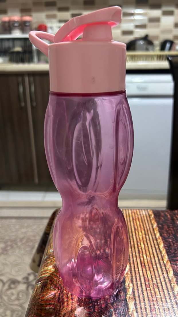 Renkli pembemsi tasarıma sahip, kolay tutulabilen şekli ve kullanışlı kapağı olan bebek biberonu veya suluk