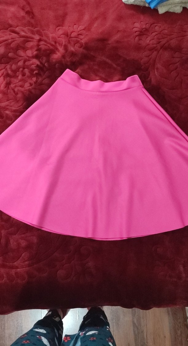 Pembe renkli çan kesim. Yumuşak krep kumaş ve sıcak kumaştan üretilmiş, cesur pop kültür tarzı sunar.